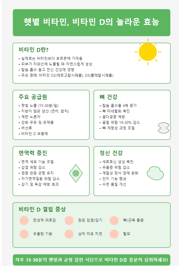 태그: 비타민D, 햇볕비타민, 면역력강화, 골다공증예방, 뼈건강, 우울증개선, 겨울우울증, 비타민D결핍, 영양제추천, 건강관리