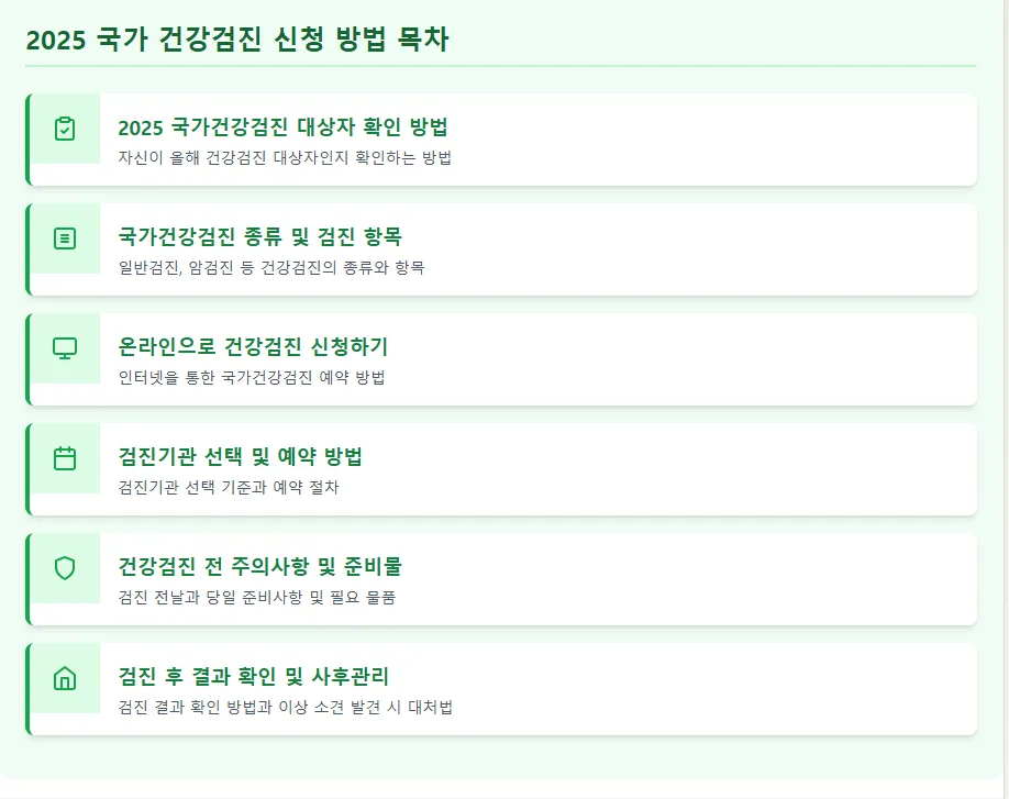 국가건강검진, 건강검진 신청방법, 2025 건강검진, 암검진, 건강검진 예약, 건강검진 준비물, 건강검진 결과, 건강보험공단, 무료 건강검진, 건강관리