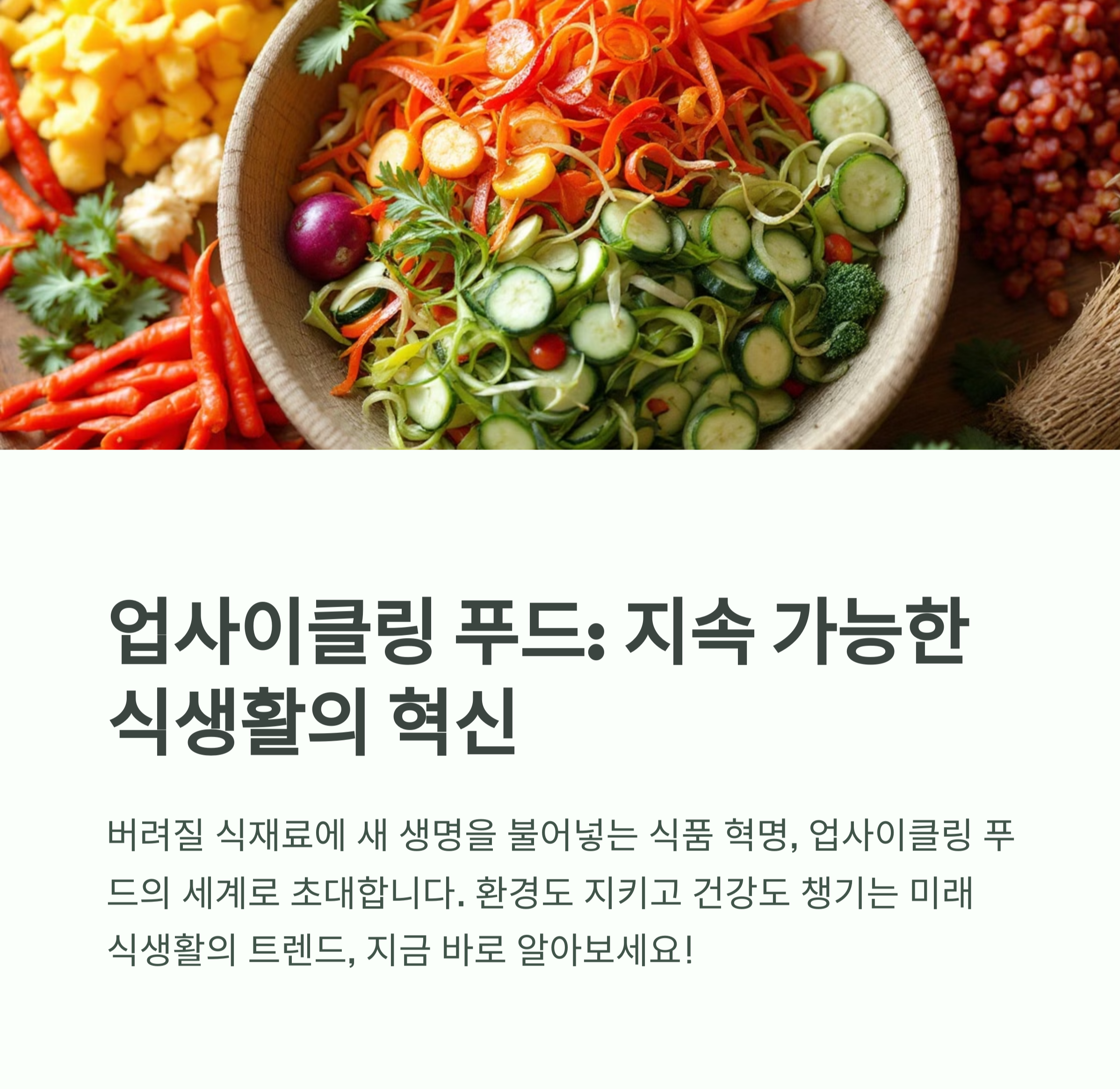 여러분, 매일 버려지는 식재료가 환경에 미치는 영향을 생각해 보신 적 있나요? 푸드 업사이클링 뜻 다양한 종류와 원료 레시피 를 알아보며 버려질 운명이었던 음식물이 새롭게 태어나 건강과 환경, 두 마리 토끼를 모두 잡을 수 있다면 어떨까요?