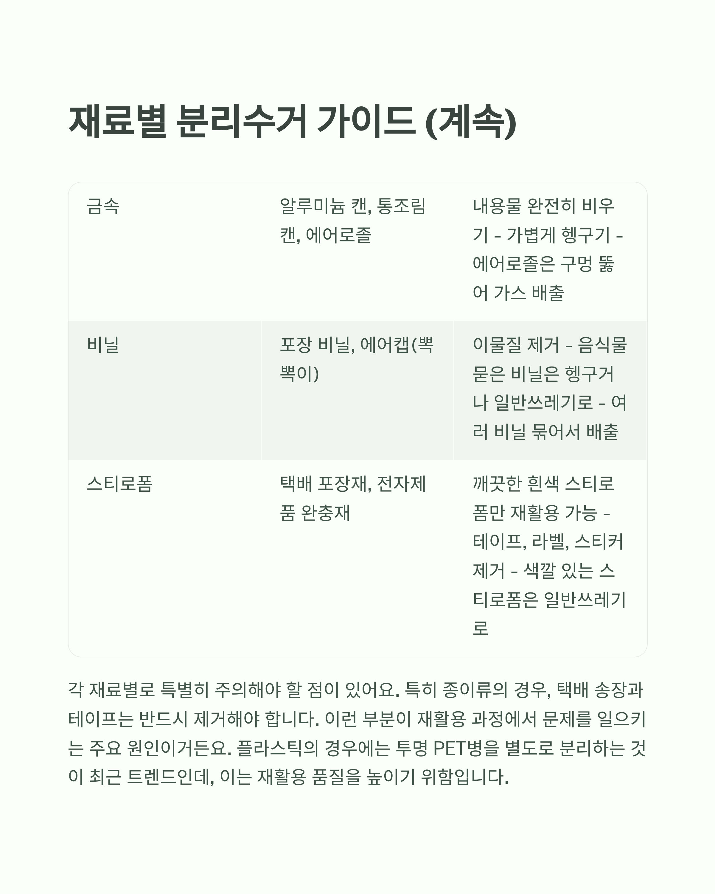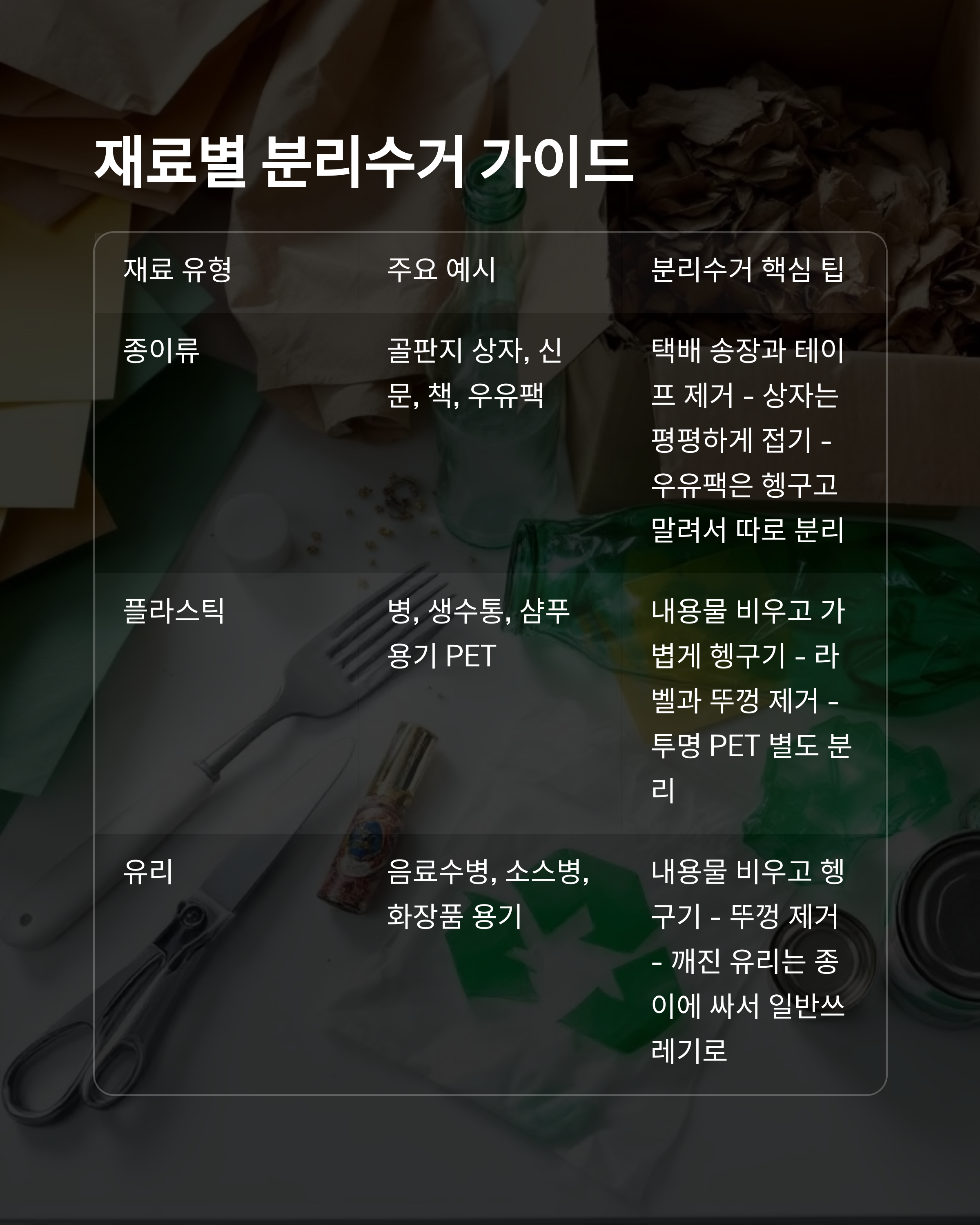 | 재료 유형 | 주요 예시 | 분리수거 핵심 팁 |