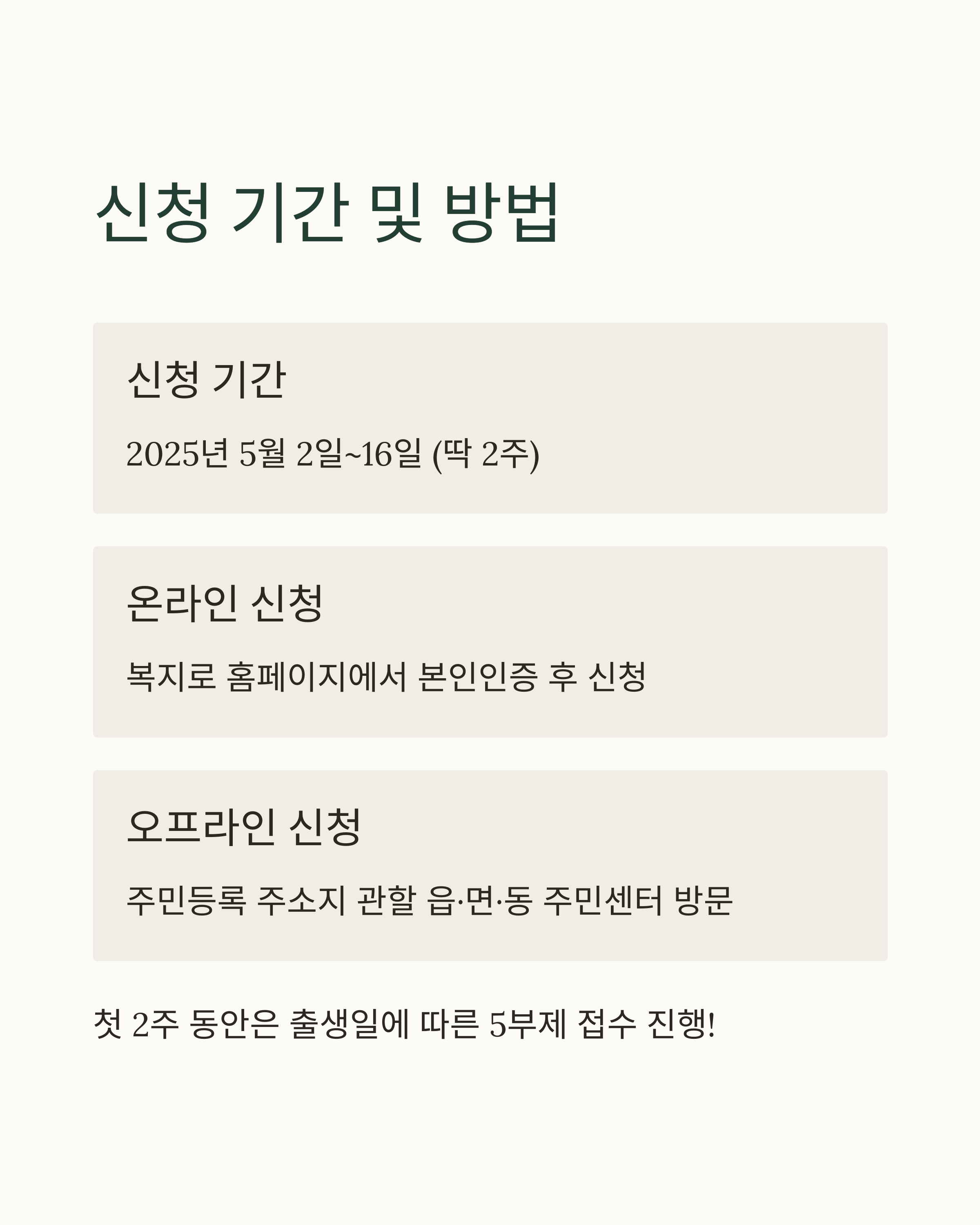 - 오프라인 신청: 주민등록 주소지 관할 읍, 면, 동 주민센터 방문