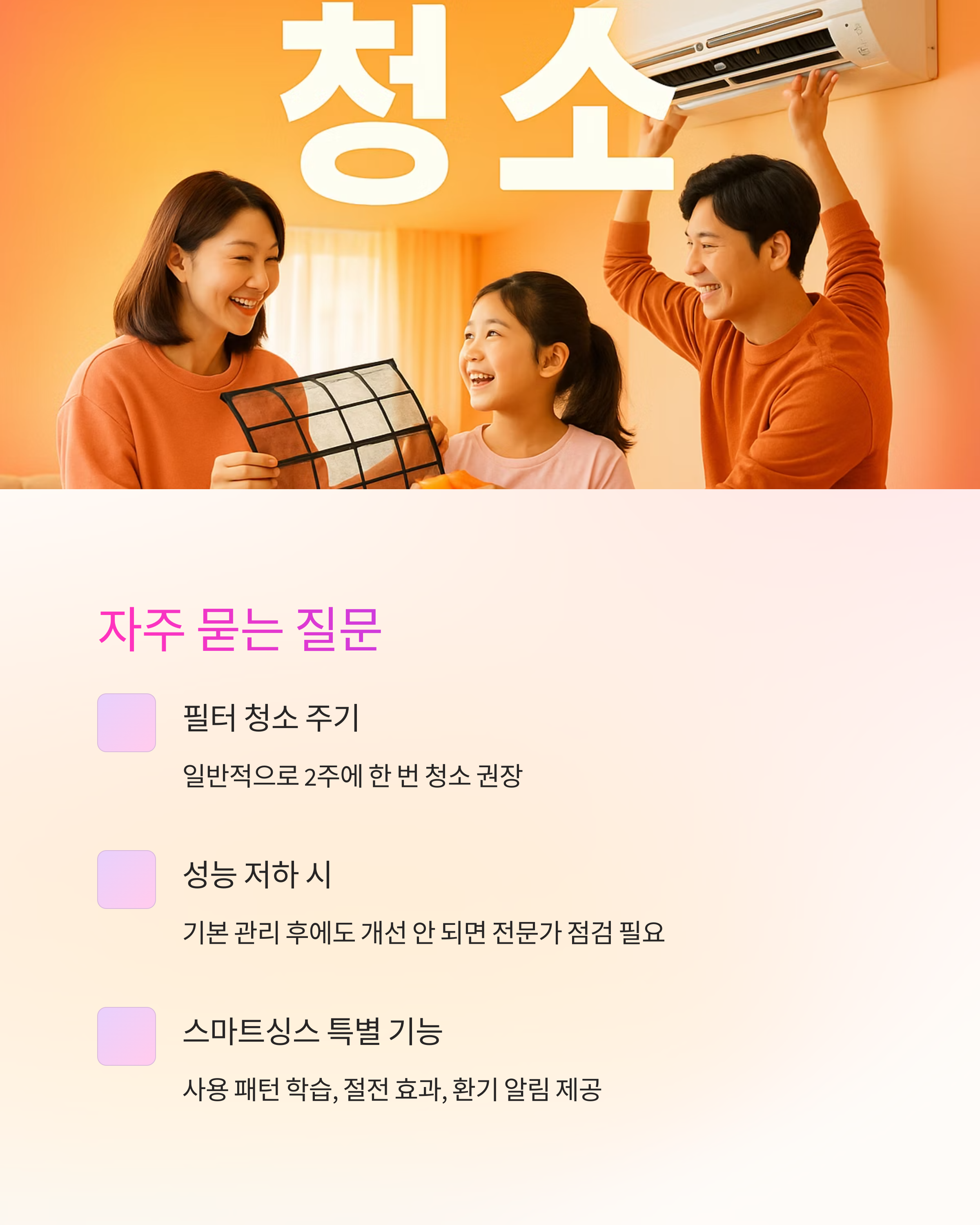 - 📌 에너지 절약: 필터나 실외기 점검을 통해 냉방 효율을 높이면 전기 요금을 절감할 수 있습니다